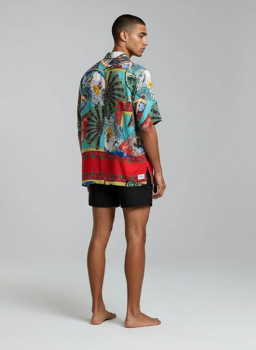 Renklerin ve desenlerin özgürce buluştuğu bu parça, yazın enerjisini modern bir silüetle taşıyor.